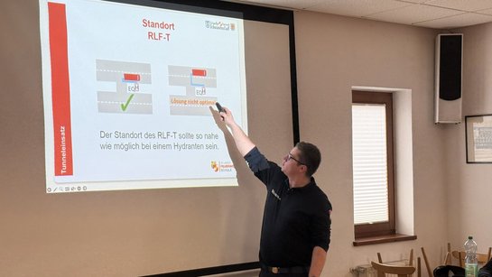 Der erste Ausbildungstag am 29. MÀrz 2025 stand ganz im Zeichen der Theorie. Die Teilnehmer erhielten grundlegendes Wissen zum Vorgehen bei BrÀnden in Tunnelanlagen. Dabei wurden unter anderem folgende Themen der Tunneleinsatztaktik beleuchtet: